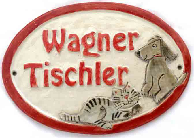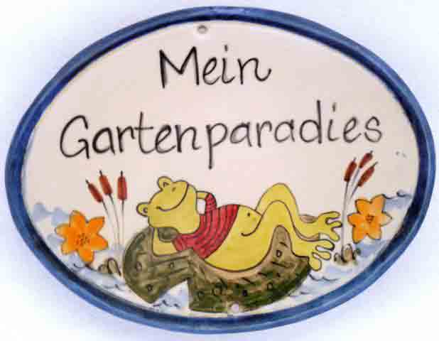 Individuelle Keramikschilder fertige ich aus frostsicherem Steinzeugton.